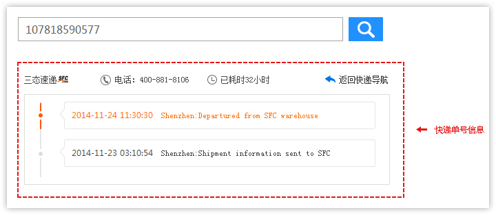 2、查詢快遞單號(hào)詳細(xì)信息。