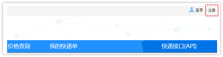 第1步:打開快遞網(wǎng),點擊頁面右上角的"注冊"。