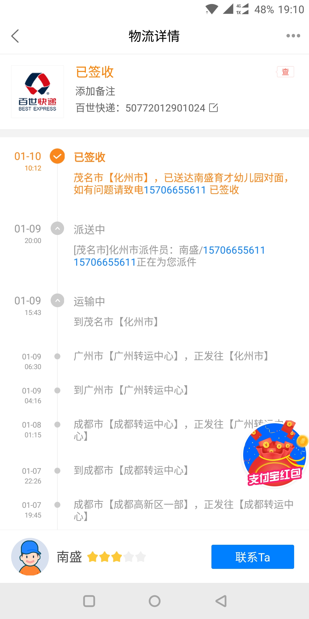 六天還沒(méi)送到,垃圾百世快遞公司,下次不會(huì)用了