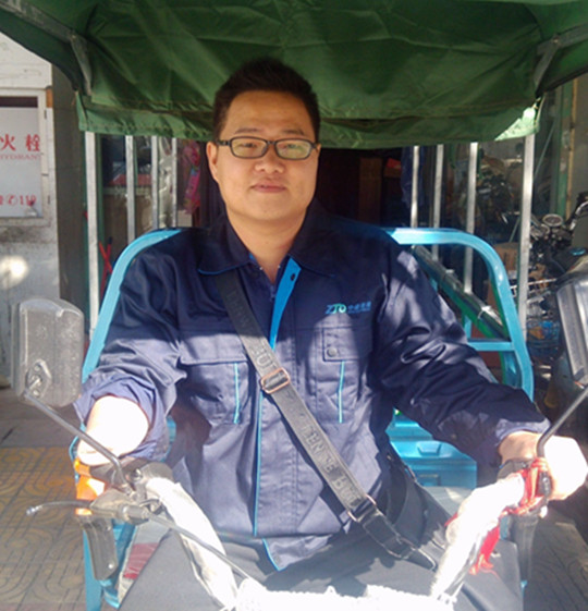 在操作場地打包區(qū)域,黃月斌僅用3分鐘將40-50個大小不一的快件整齊地放在袋子里。而快件全套操作流程,黃月斌只用了1個月就全部掌握。由于他積極上進(jìn),還考取了快遞員技能資格證書。然而有誰知道,分揀、建包、派件等這些工作,普通人或許可以信手拈來,但是黃月斌卻不行。4歲時因貪玩右臂被鞭炮炸傷截肢,只能靠左手勞作生活的黃月斌需要付出比健全人更多的努力。就拿建包來說,快件必須要整齊碼放在建包袋里,黃月斌單手裝件,必要時他就手腳并用,再不濟(jì)就用嘴咬住袋口。另外黃月斌送件的三輪車也是經(jīng)過他自己改裝,加油門的拉桿被他套上了一截水管,使他右臂截肢以上的部位可以套到水管中,從而完成加油門的動作?!半m然失去了一直手臂,但是我還是對生活充滿信心。”